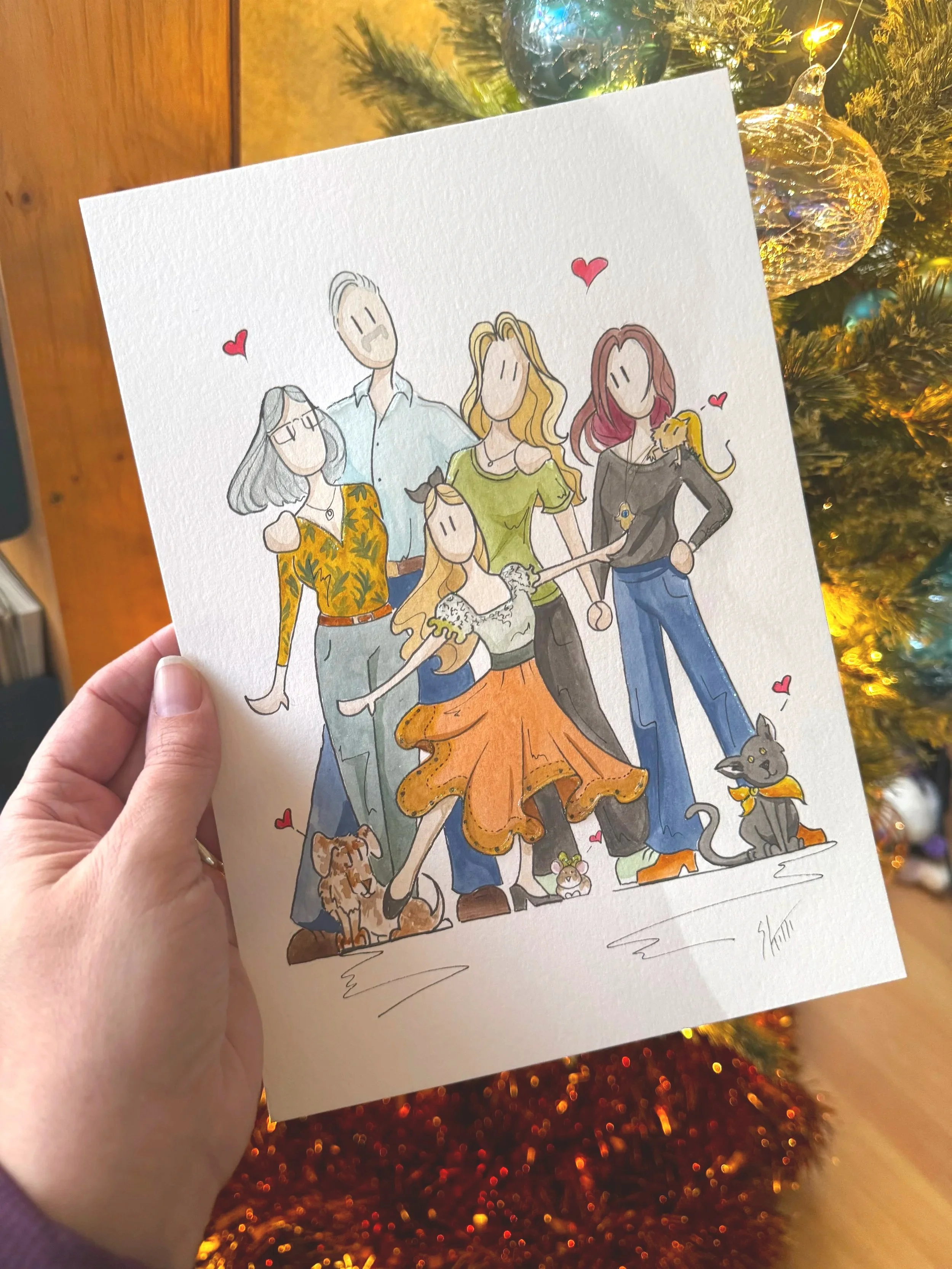 Our custom quick sketches celebrate the people and moments you love most. These tiny portraits are full of warmth and personality, and painted by hand to create a sweet, personal keepsake.